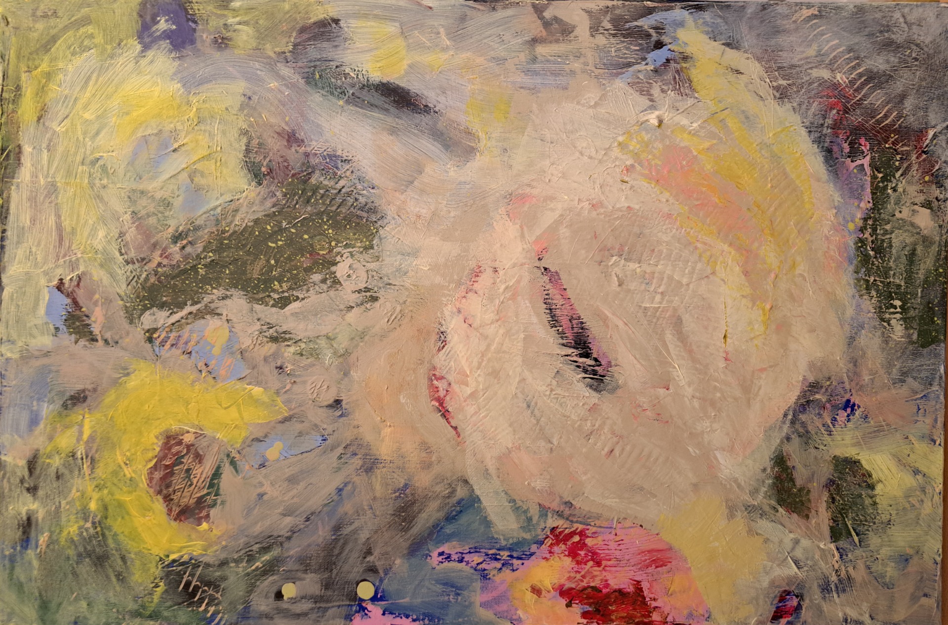 VÅREN I ROSA Akryl på mdf plate 60x80 m/ramme SOLGT